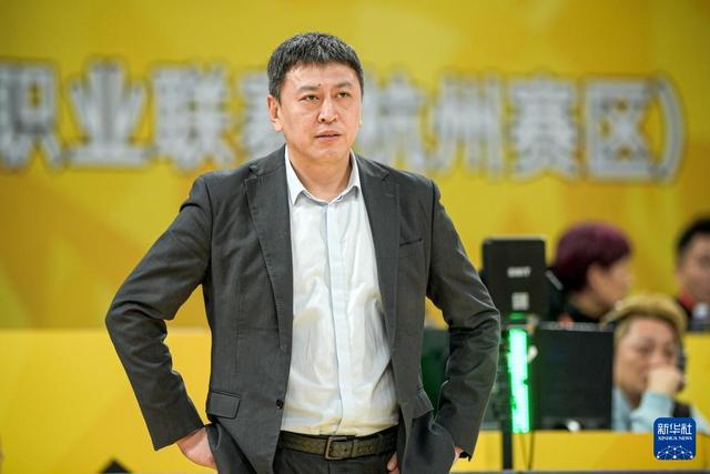 3月11日,浙江浙商证券队主教练王博在比赛中指挥。新华社记者 江汉 摄